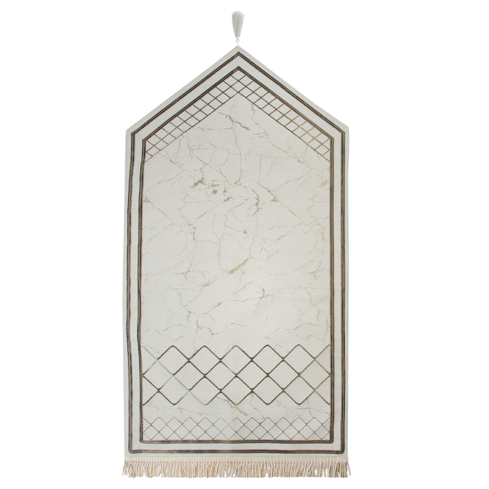 Mermer Desenli Astarlı Lüks Şönil Seccade Krem