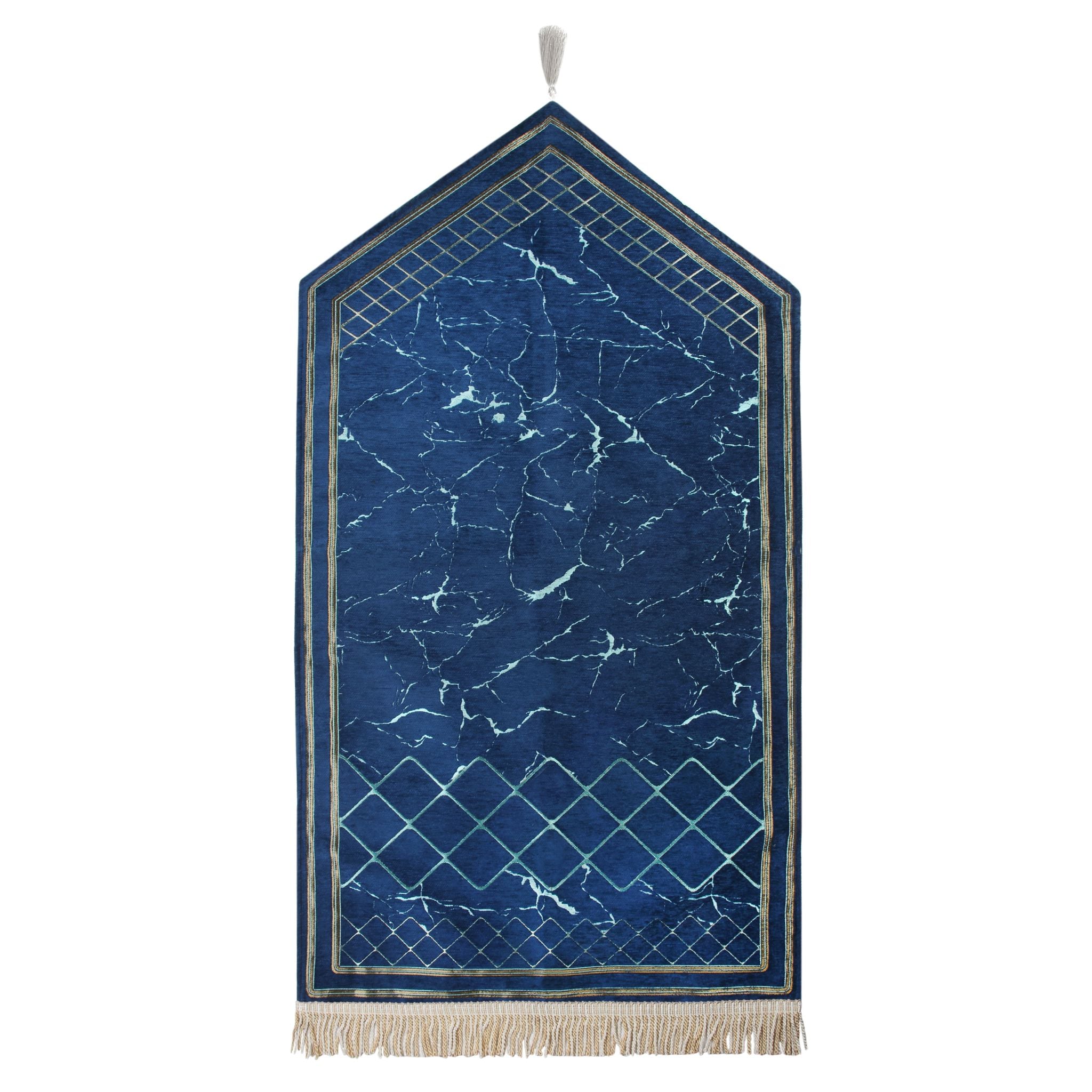 Mermer Desenli Astarlı Lüks Şönil Seccade Lacivert