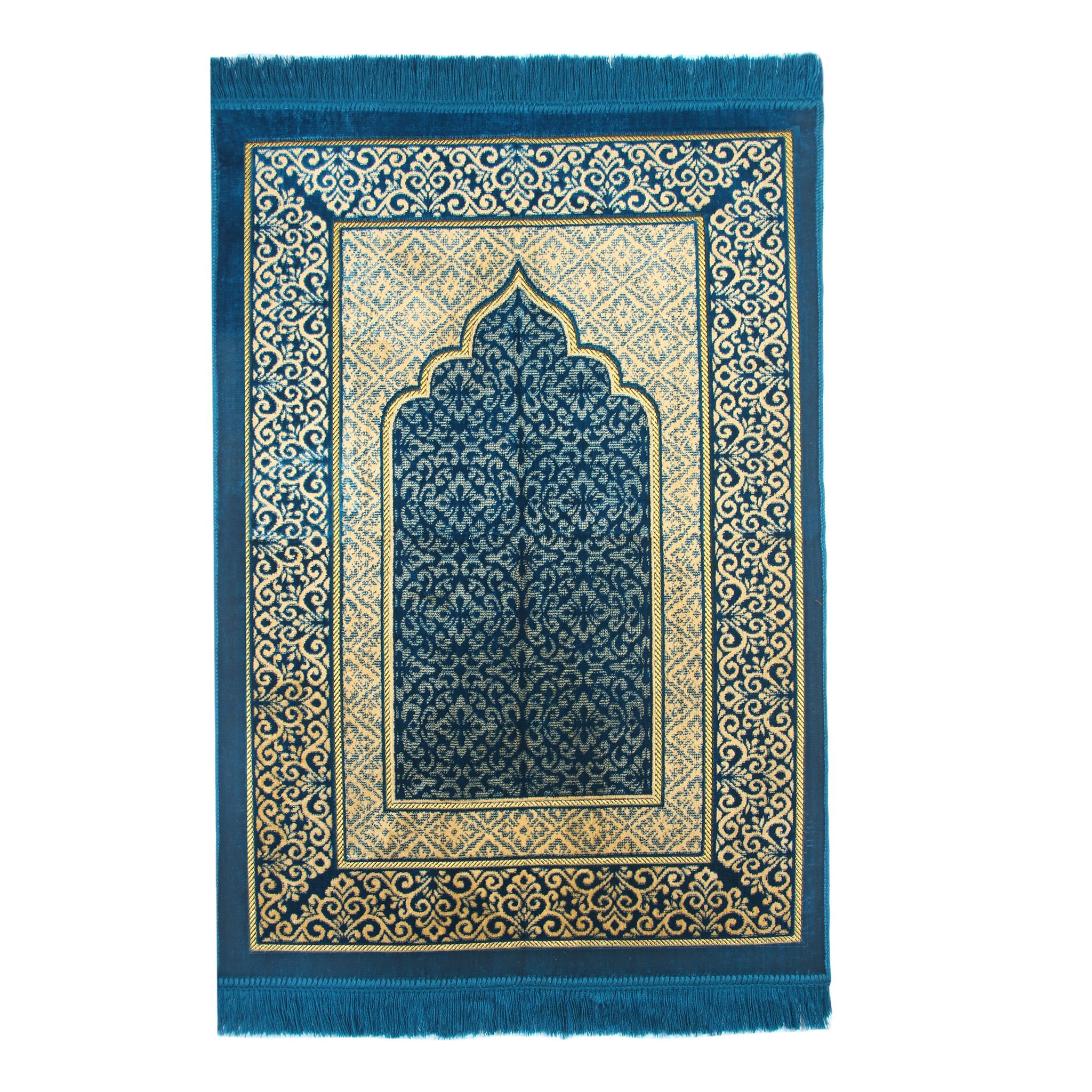 - Görseldeki seccade modeli mihraplıdır ayet içermez. Namaz kılınmasına engel değildir.