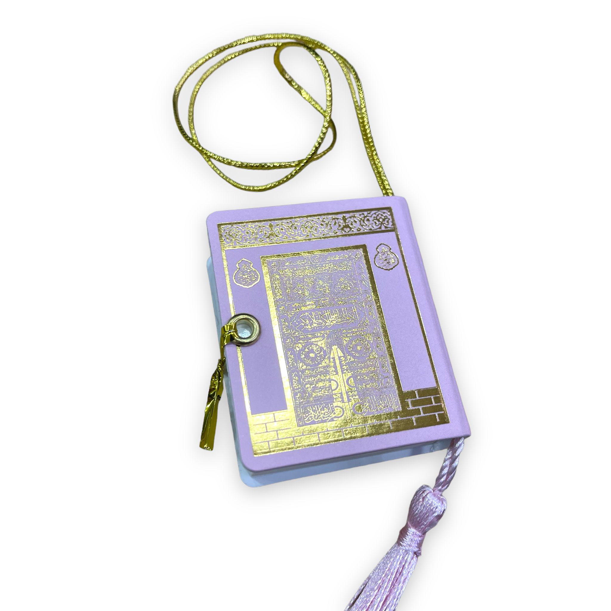 - Üstünde Kabe deseni olan yaldızlı ofset mini Kuran-ı Kerim 5x6 cm ölçüsündedir.