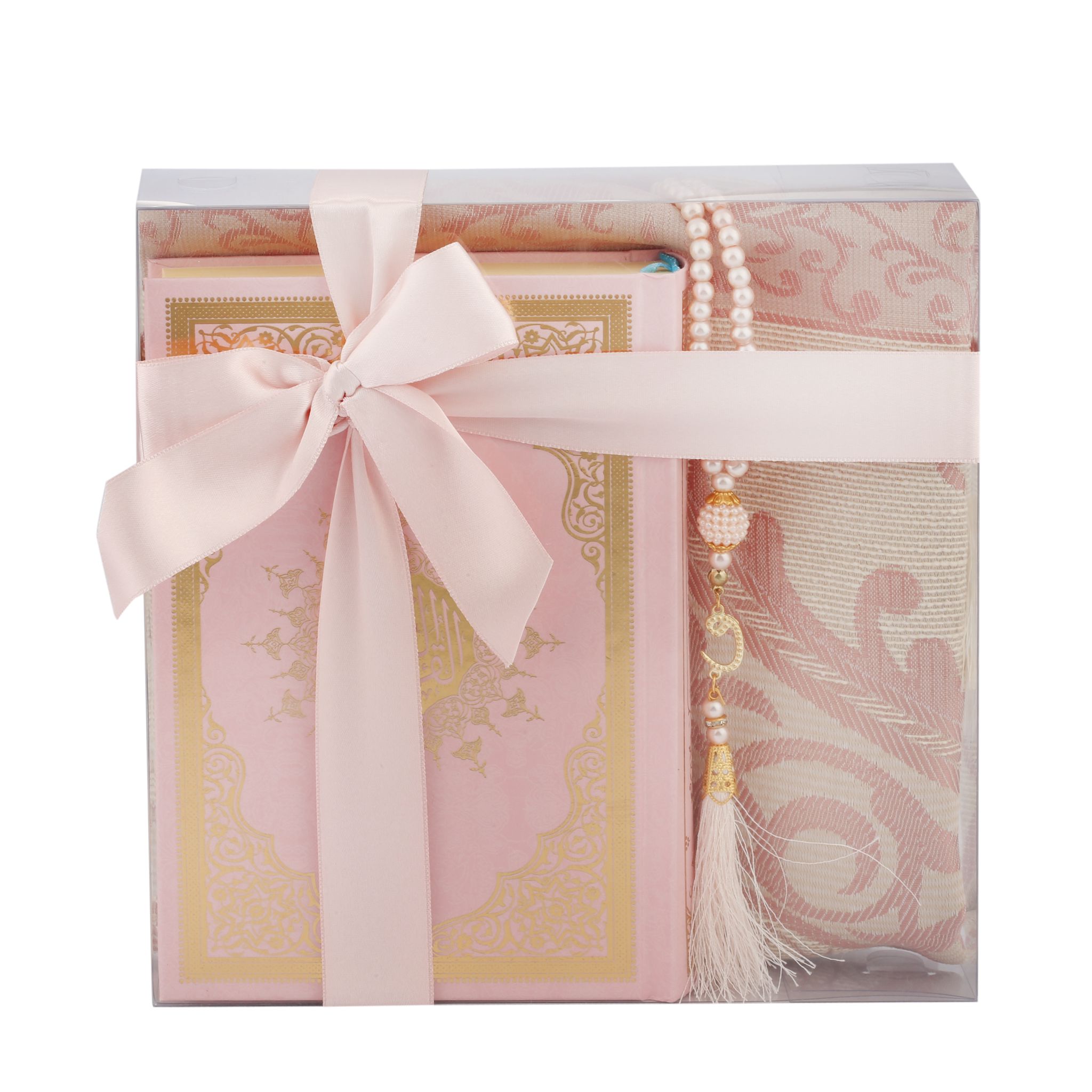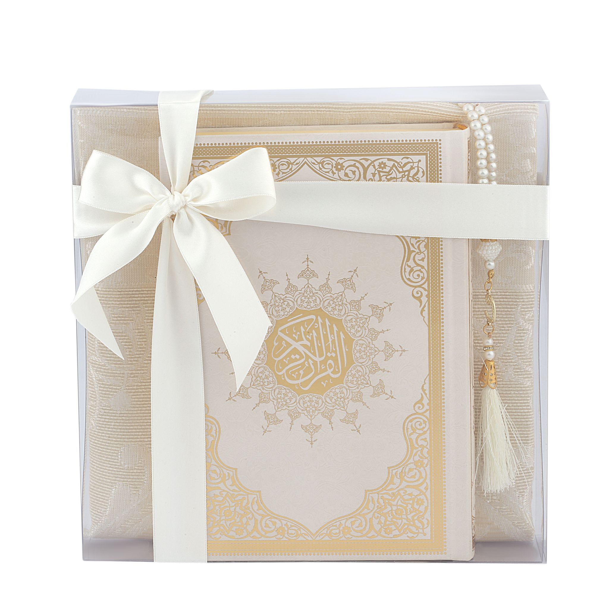 - Asetat kutu içerisinde 99'luk 6 mm Vavlı İnci Tesbih, 70x110 Tafta Seccade ve 17x25 Cm Orta Boy Ofset Medine Hatlı Kuran-ı Kerim ile beraber sunulur.
