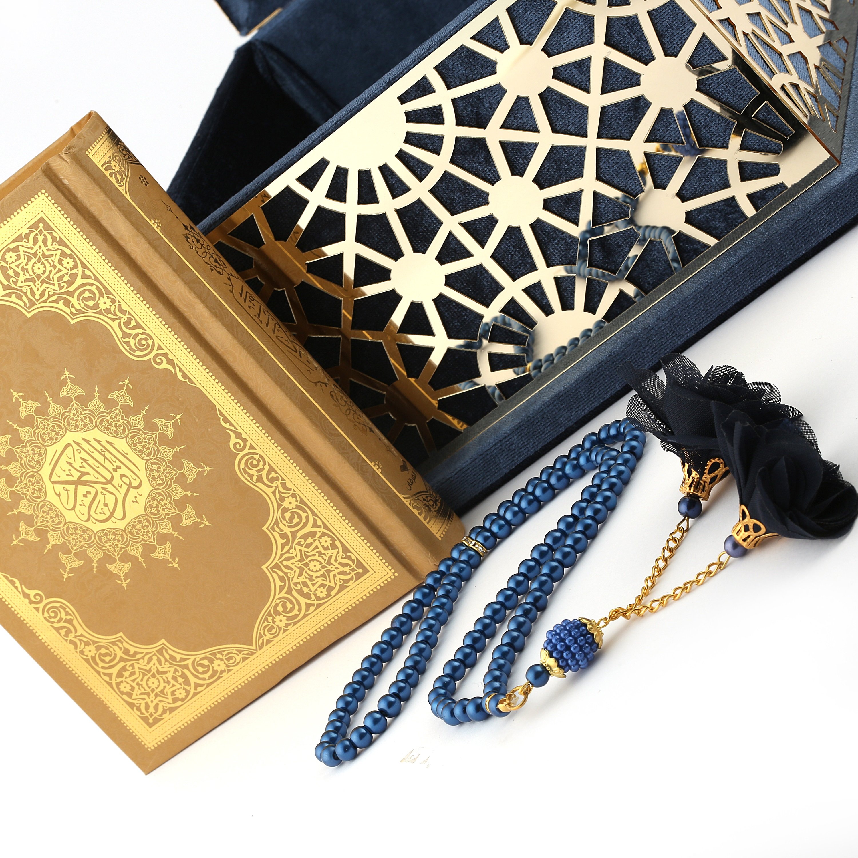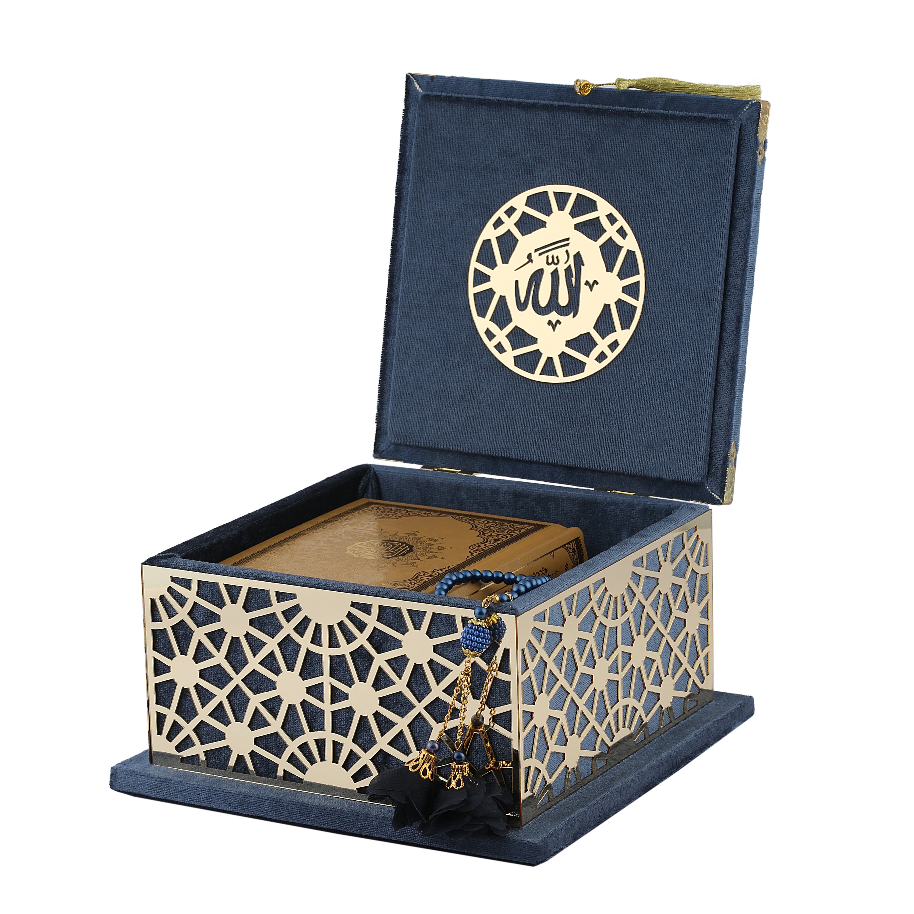 19x19 Cm Şehzade Serisi Kuran-ı Kerim Tesbih Kutusu Lacivert