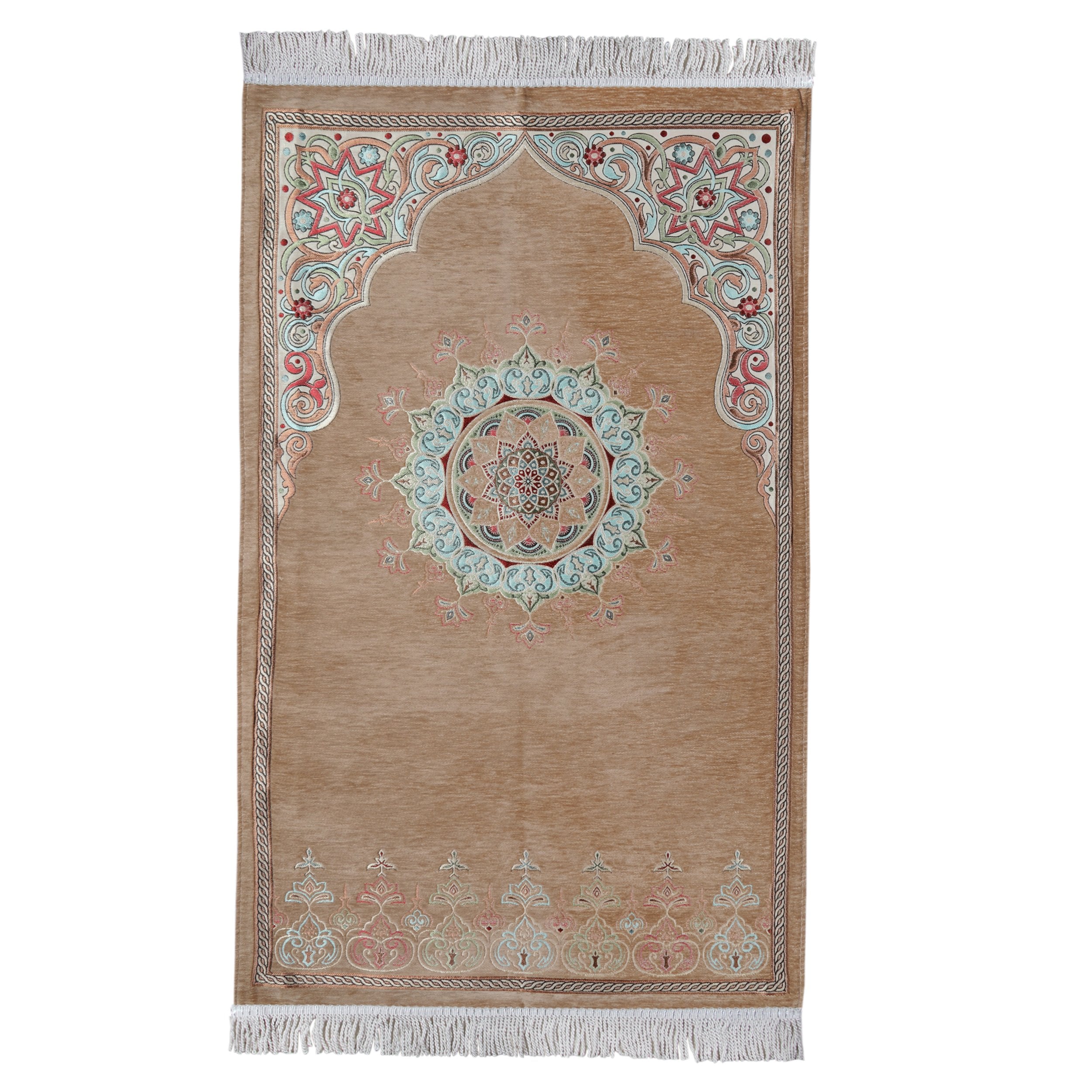 Renkli Göbekli Lüks Astarlı Şönil Seccade Gold