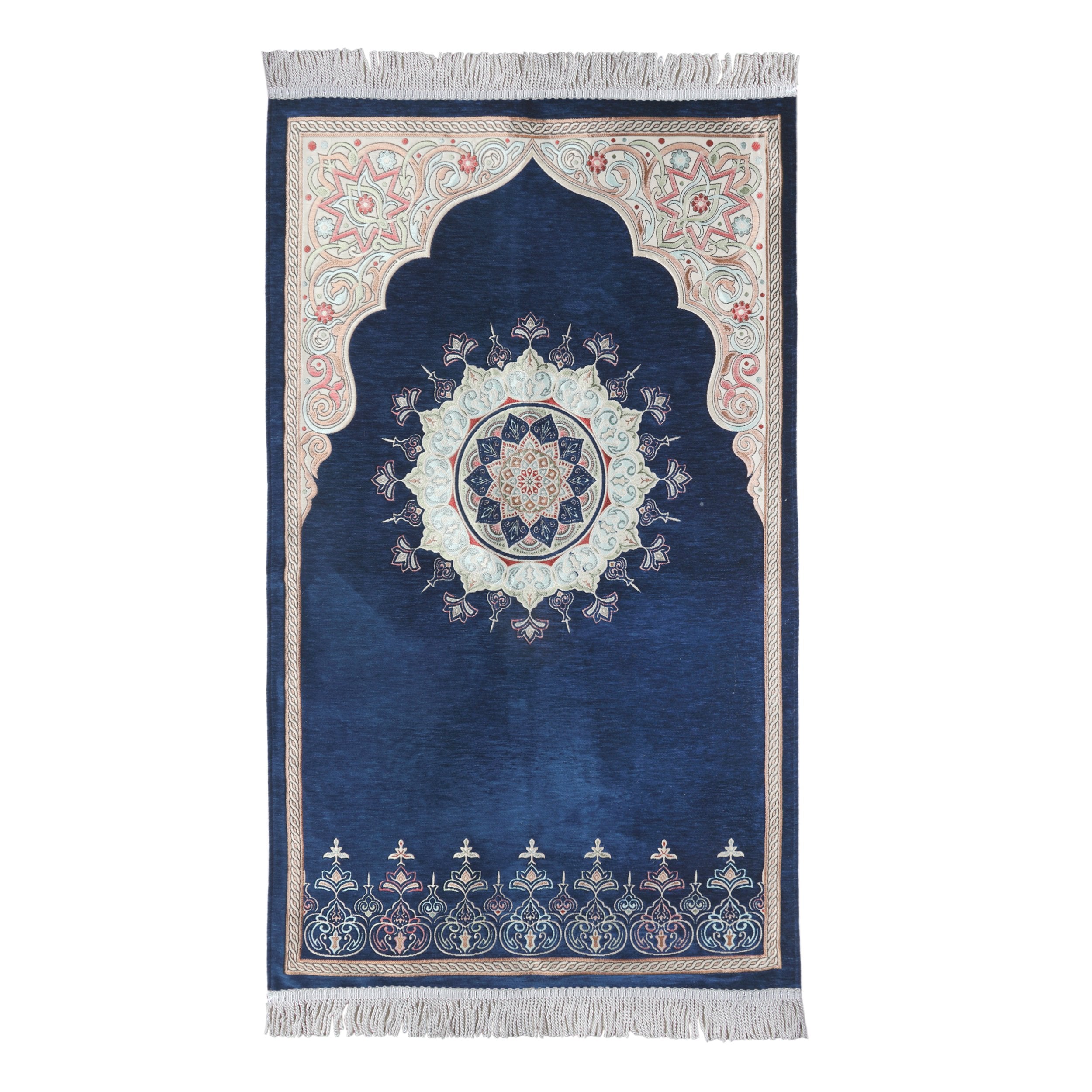 Renkli Göbekli Lüks Astarlı Şönil Seccade Lacivert