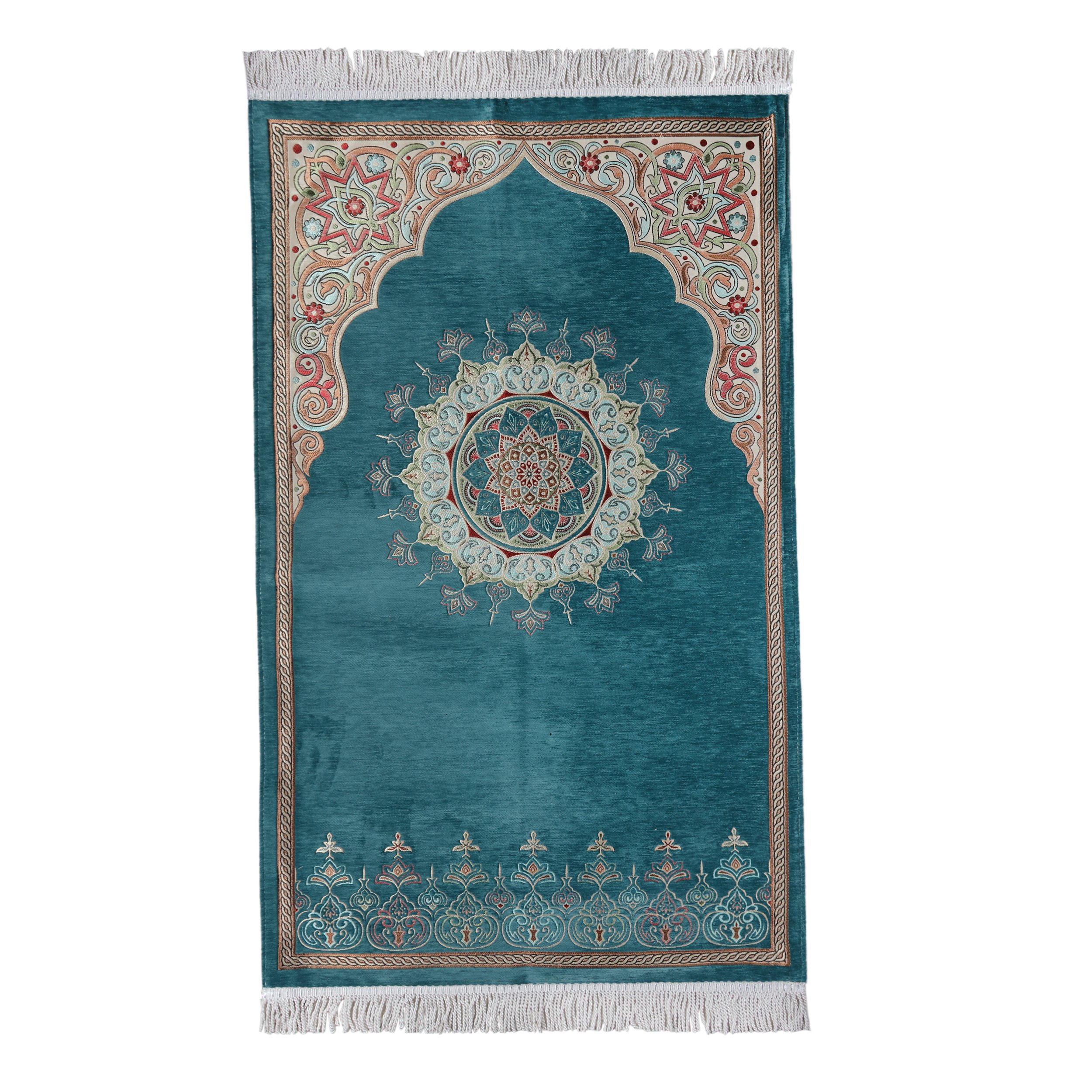 Renkli Göbekli Lüks Astarlı Şönil Seccade Mavi