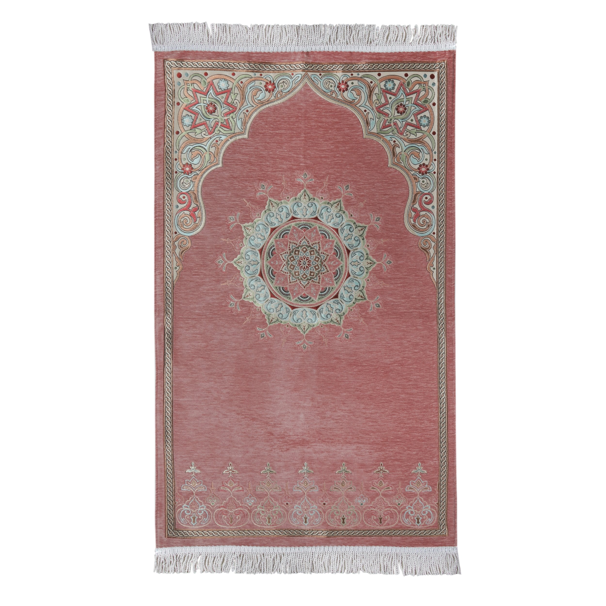 Renkli Göbekli Lüks Astarlı Şönil Seccade Pembe