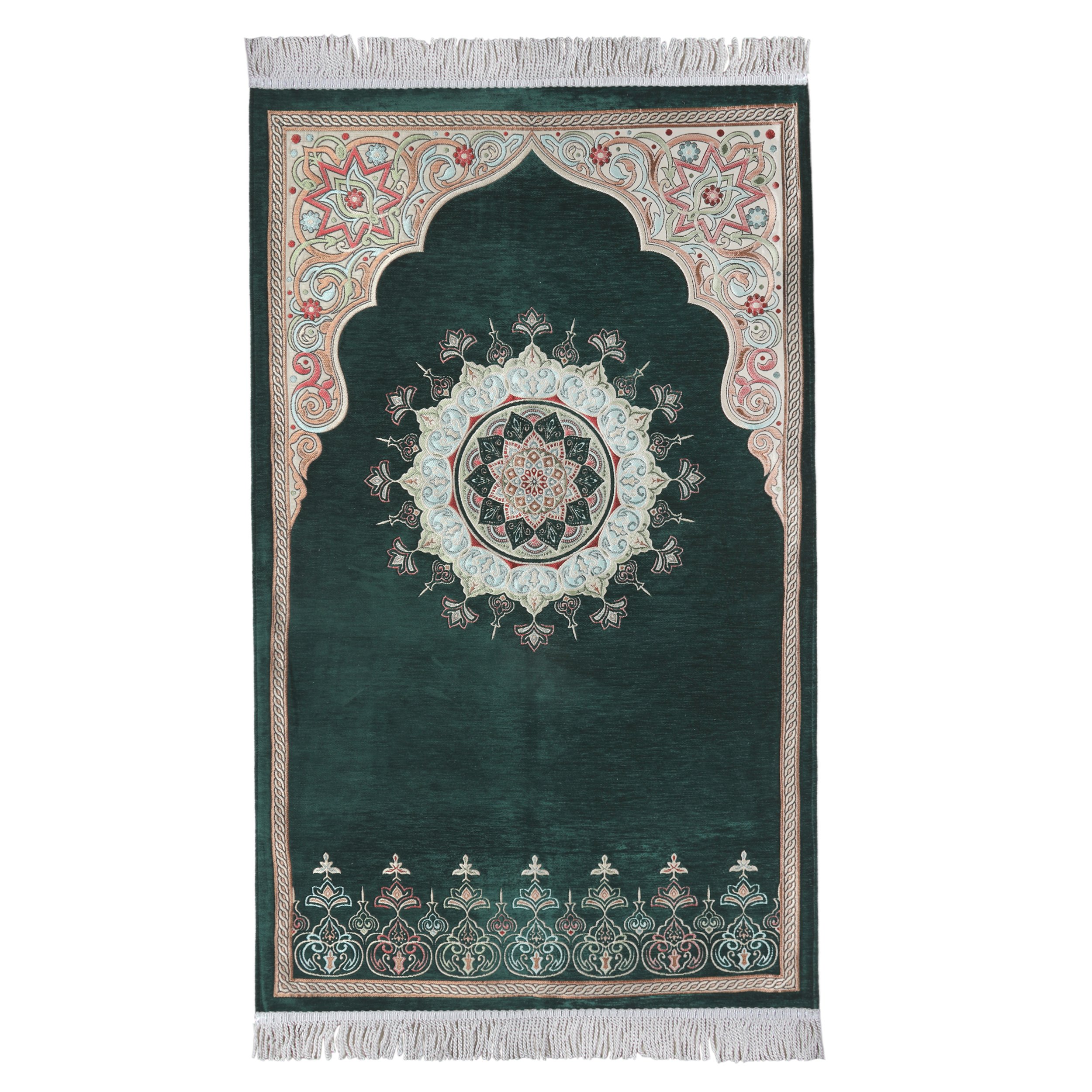 Renkli Göbekli Lüks Astarlı Şönil Seccade Yeşil