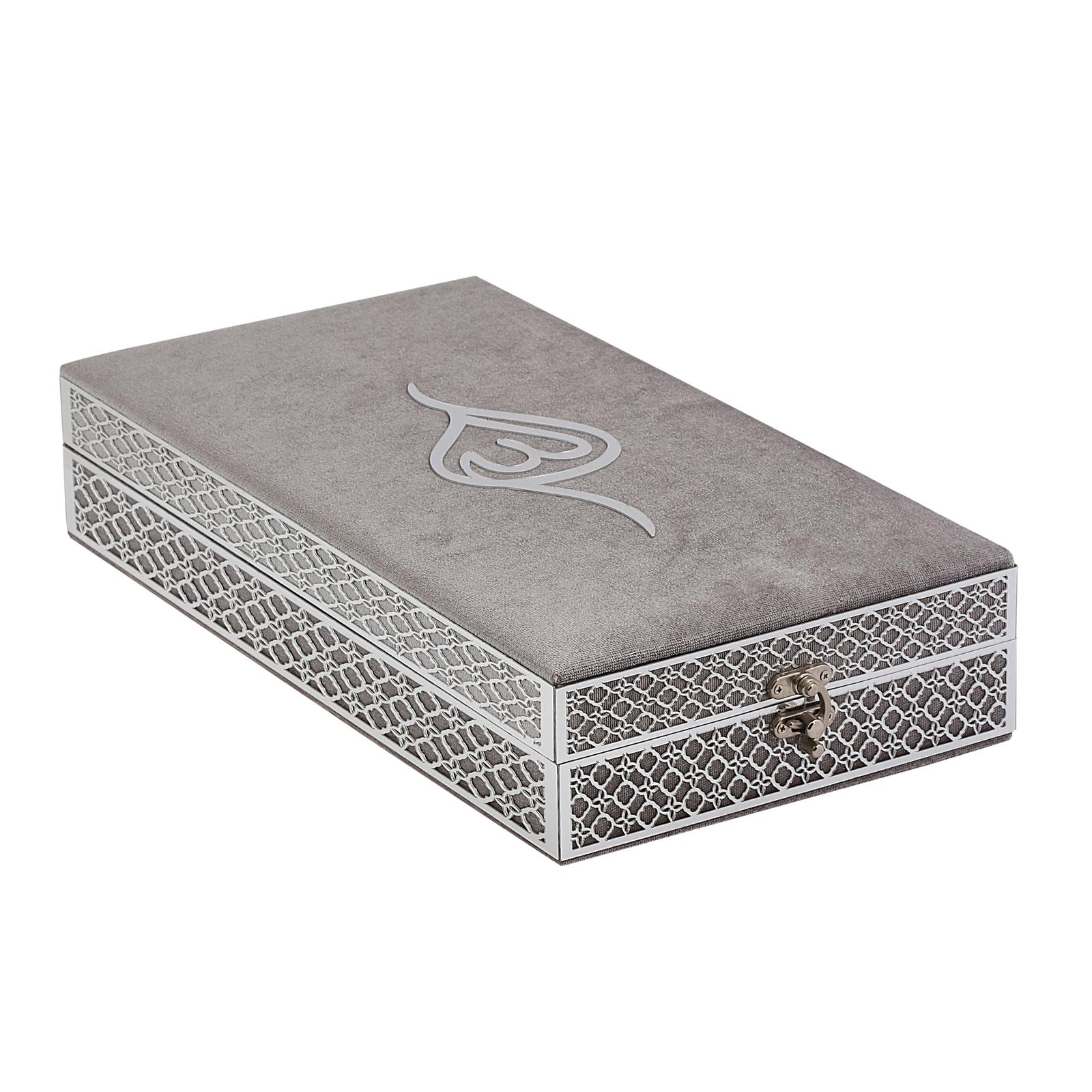 Topkapı Serisi Kadife Kuran-ı Kerim Kutusu Gri