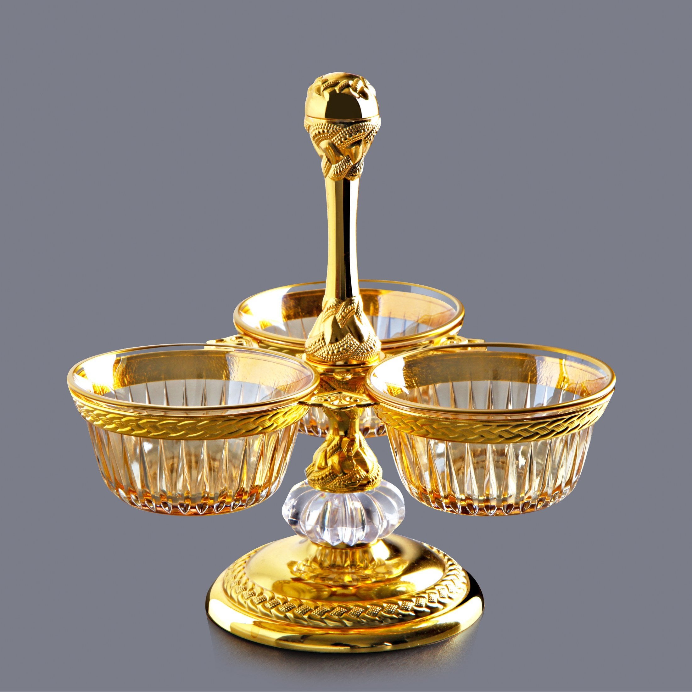 Üçlü Cam Hurmalık Ve Sunumluk Gold