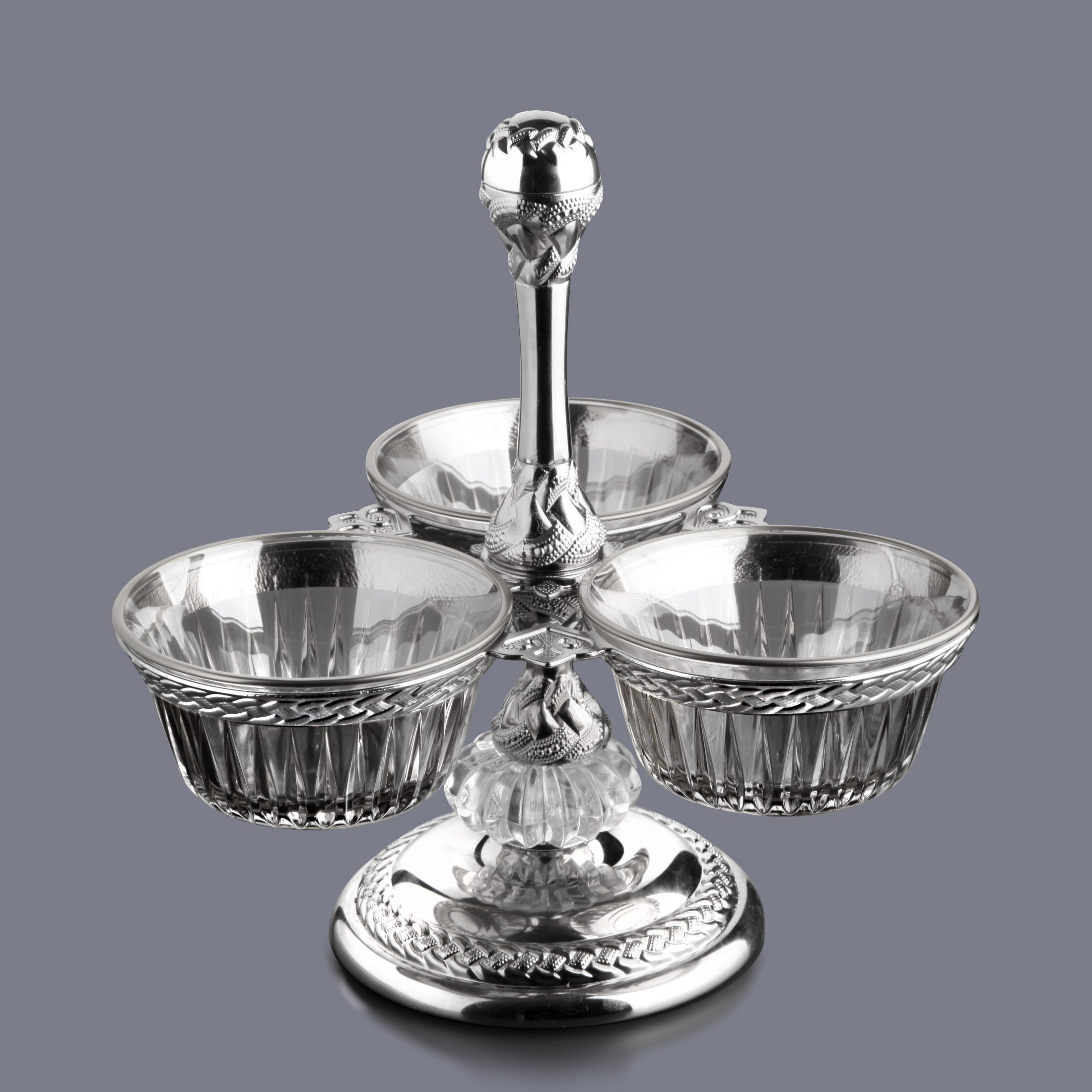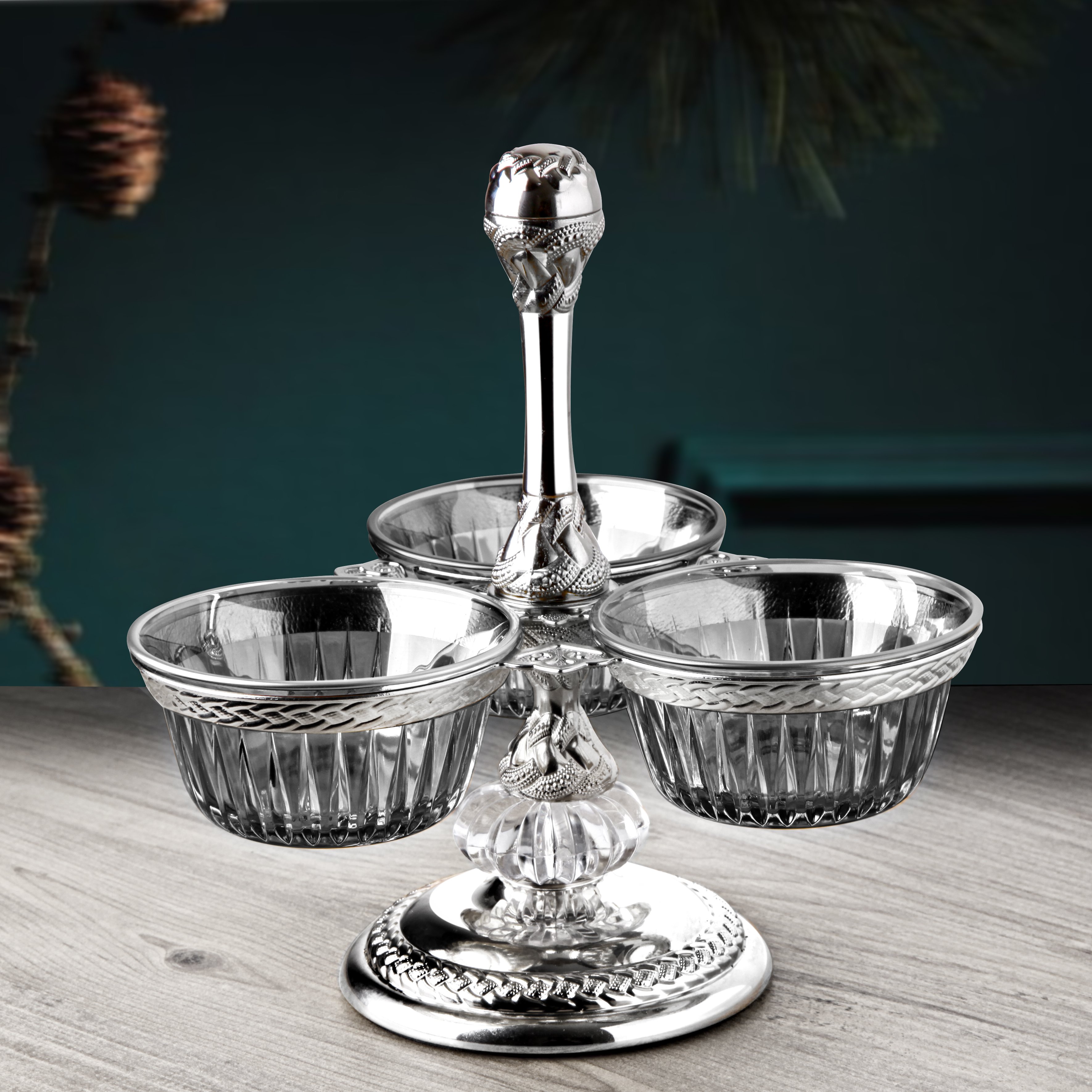 Üçlü Cam Hurmalık Ve Sunumluk Gümüş