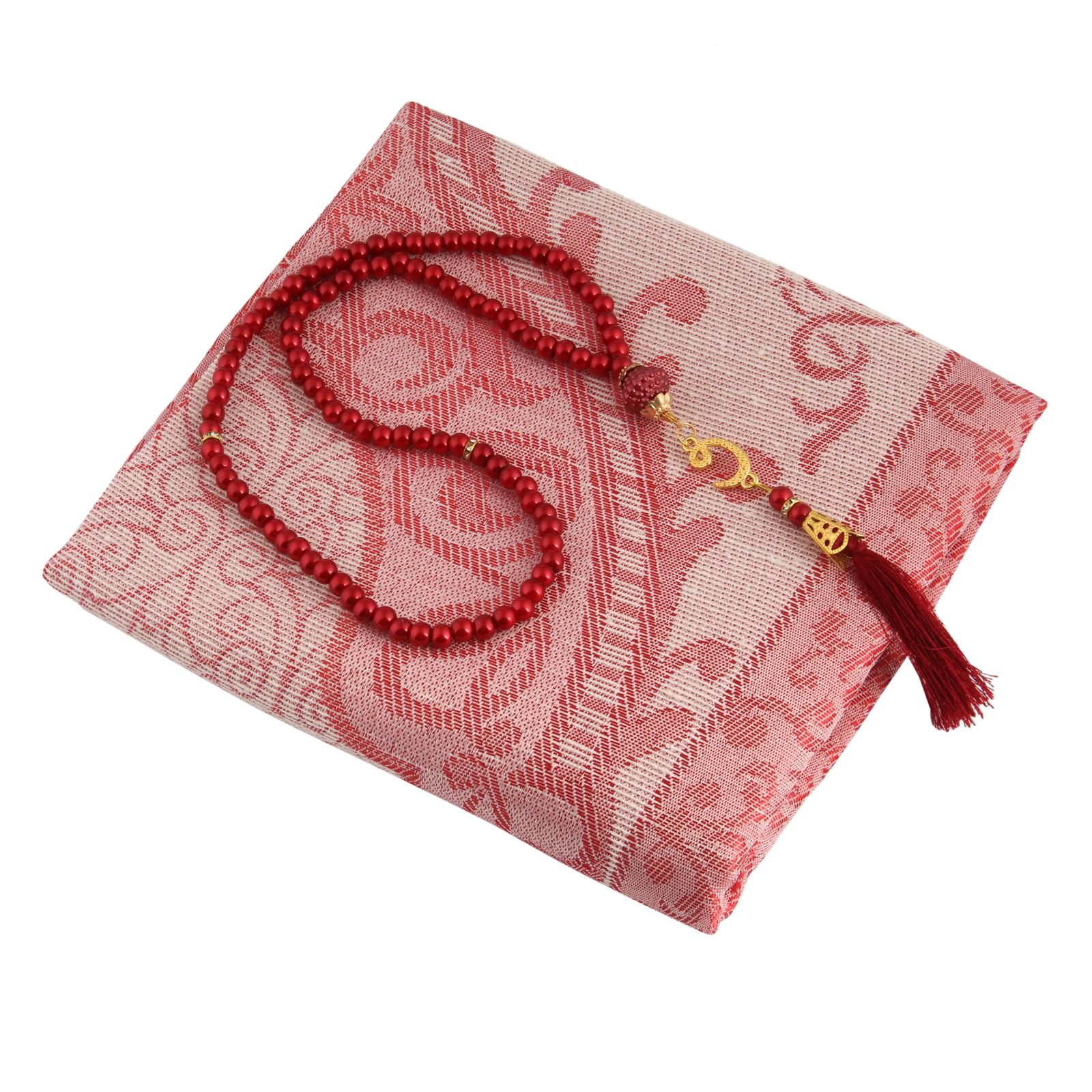 Üsküdar Serisi Hediyelik Seccade Tesbih Seti: Bordo