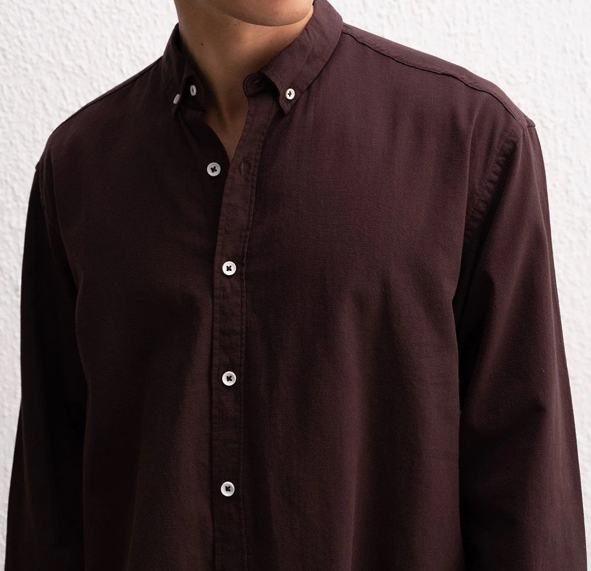 Uzun Kollu Rahat Keten Gömlek Kahverengi - XL