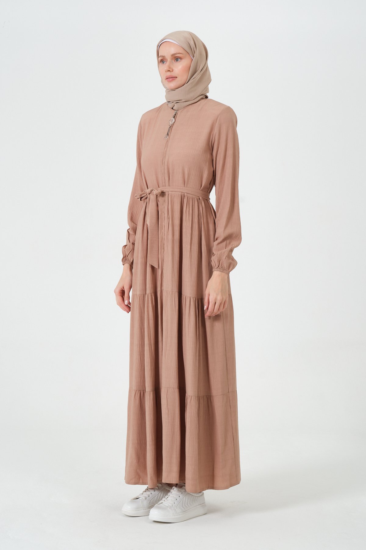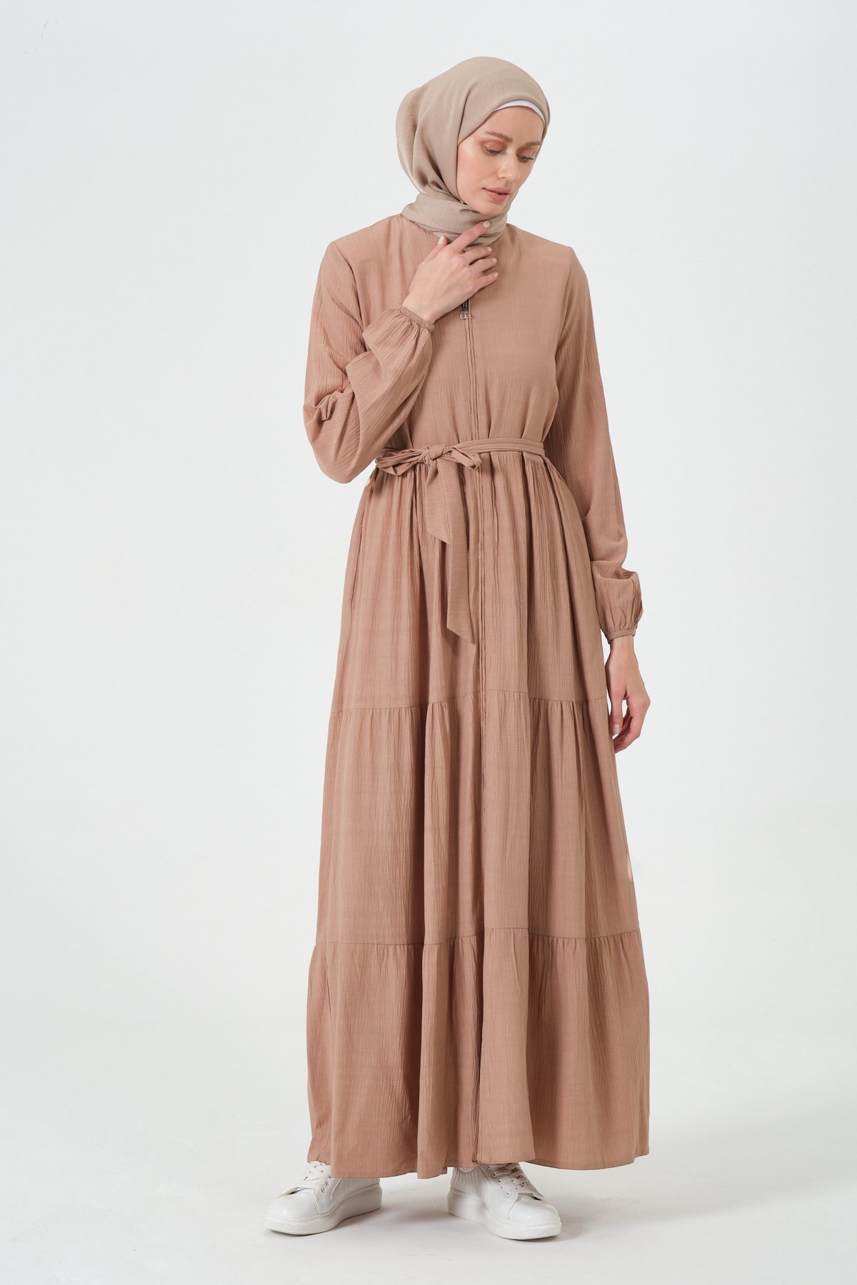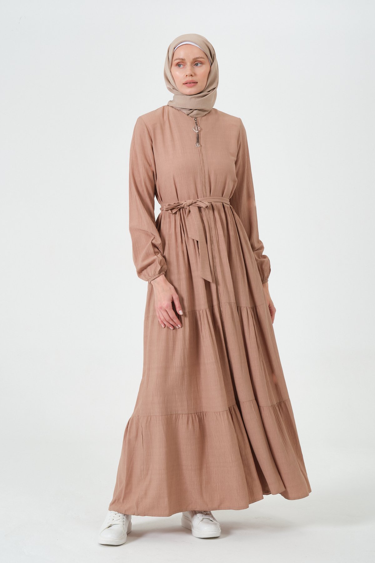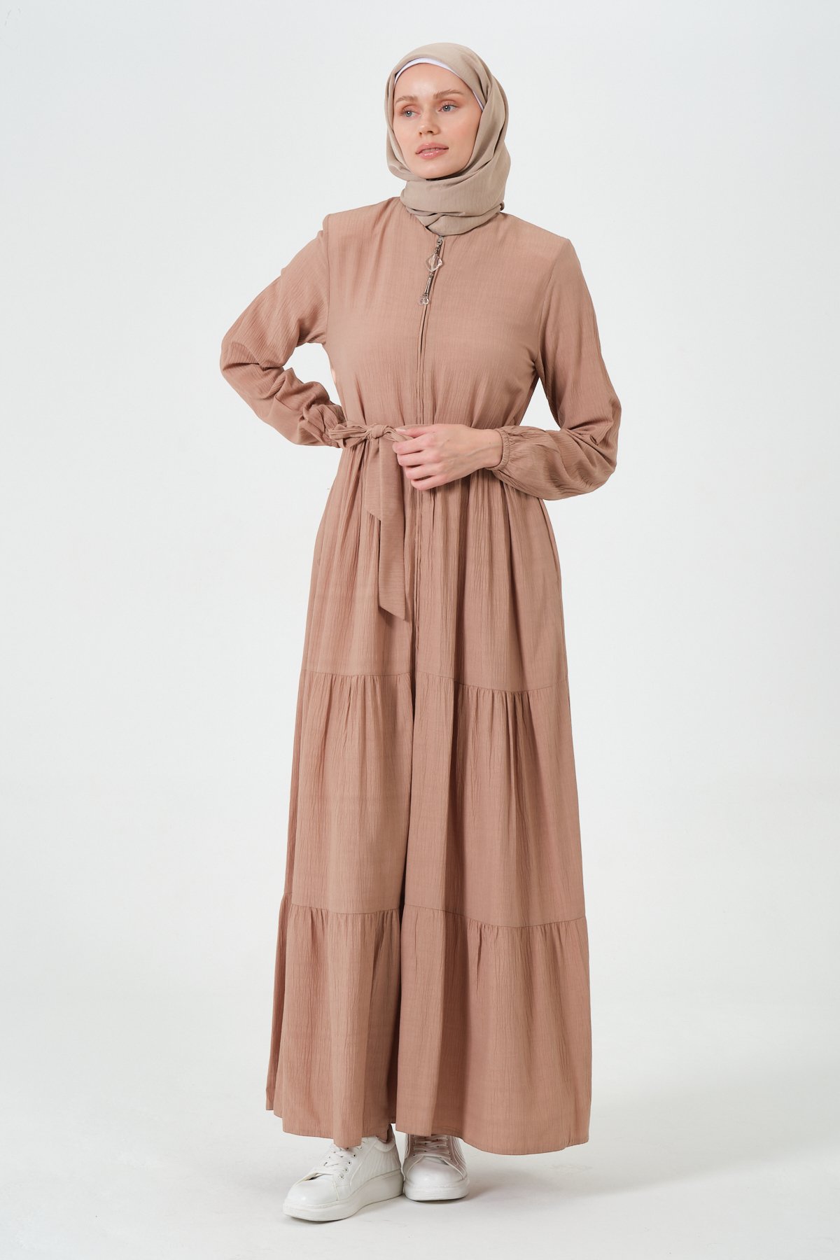 Viskon Kumaş Yıldız Cepli Ferace Krem - 40