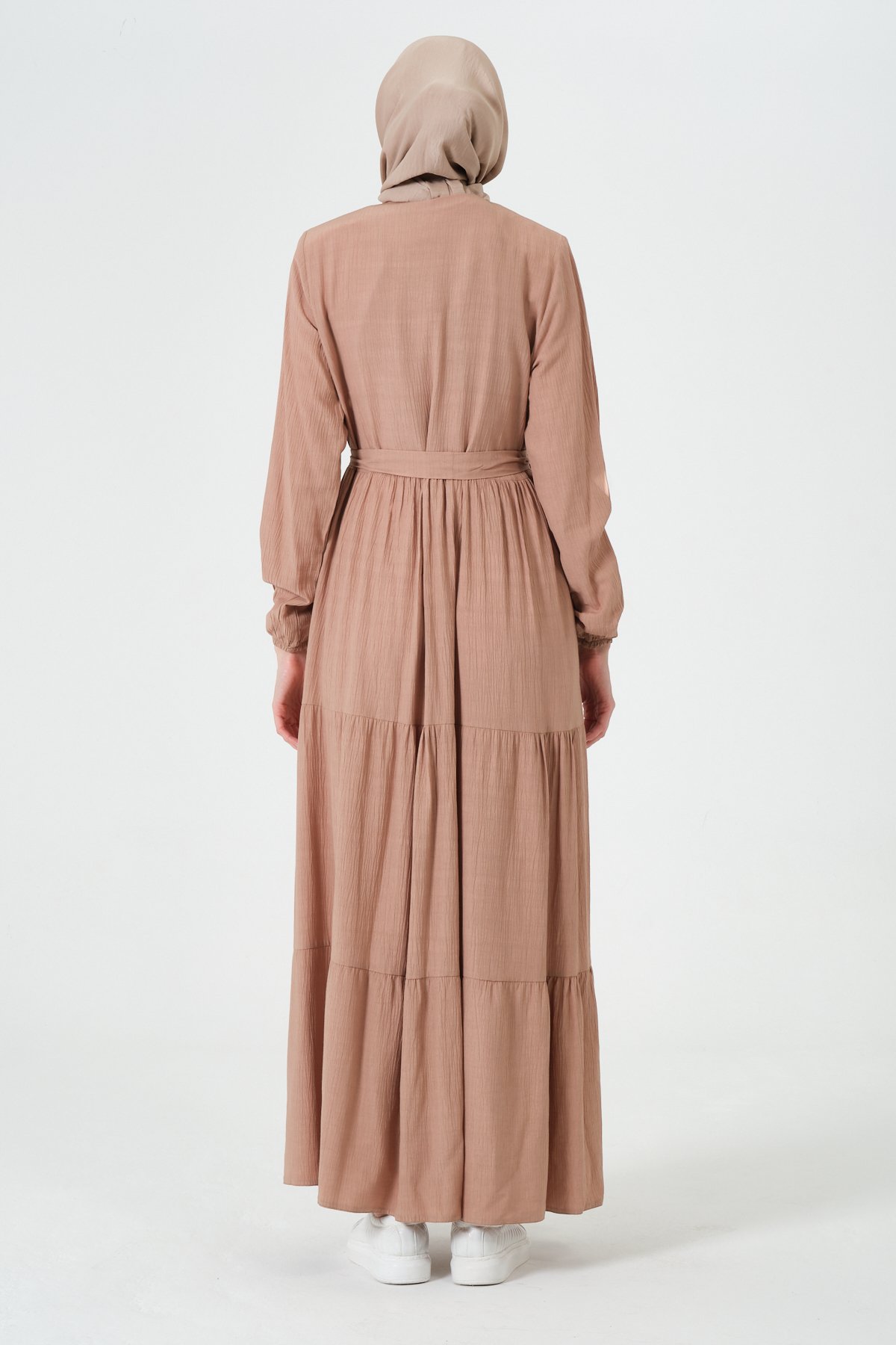 Viskon Kumaş Yıldız Cepli Ferace Krem - 44