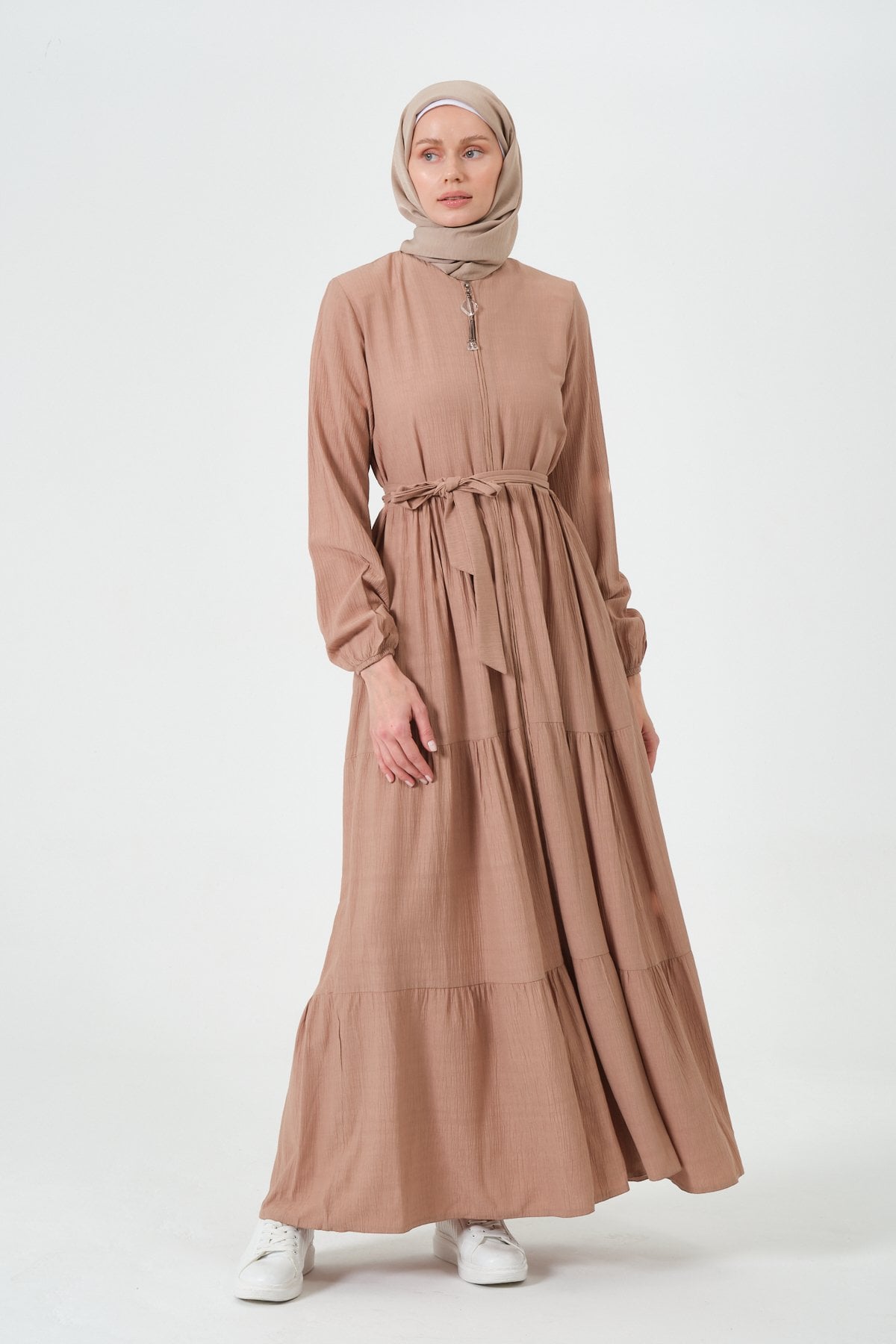 Viskon Kumaş Yıldız Cepli Ferace Krem - 48