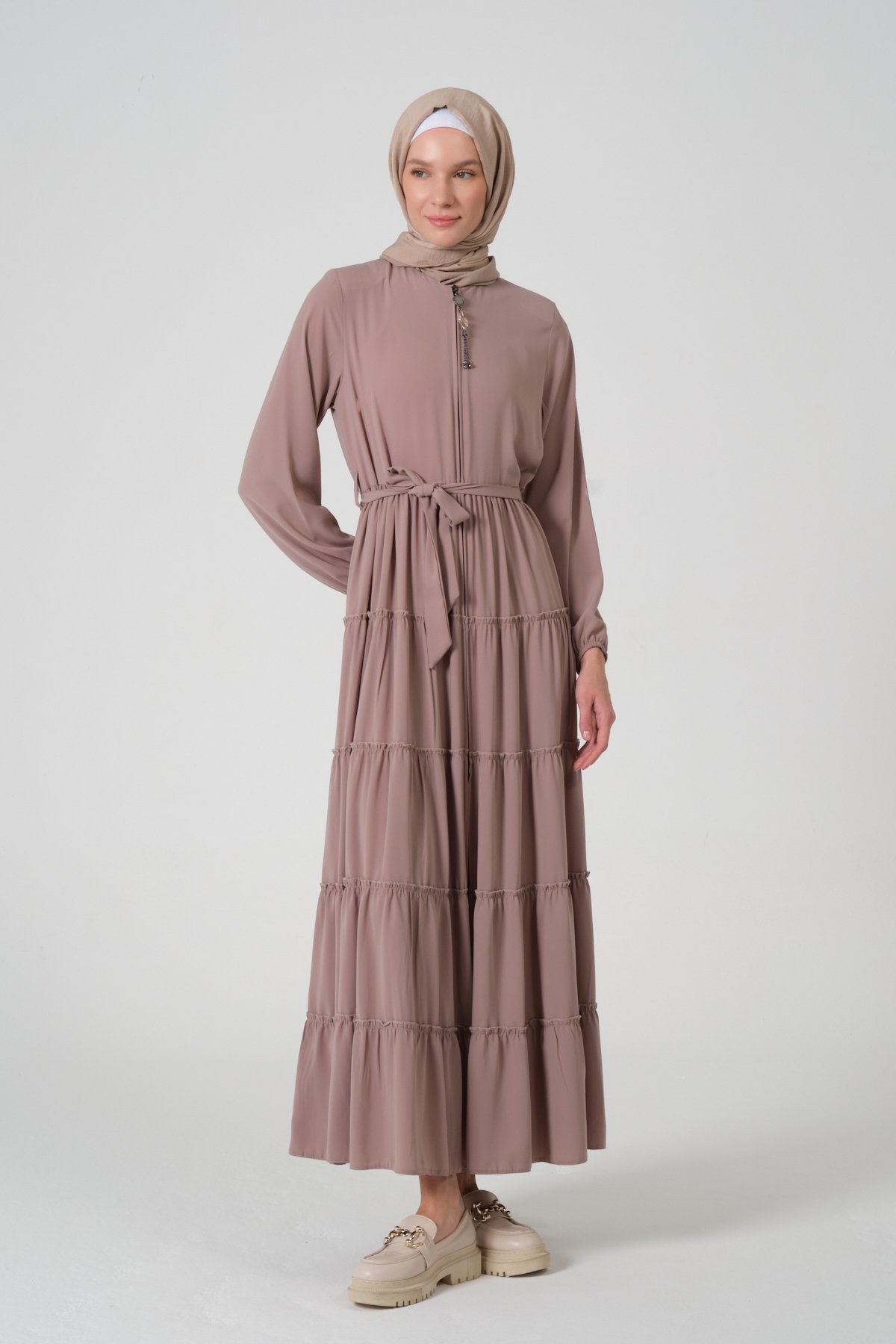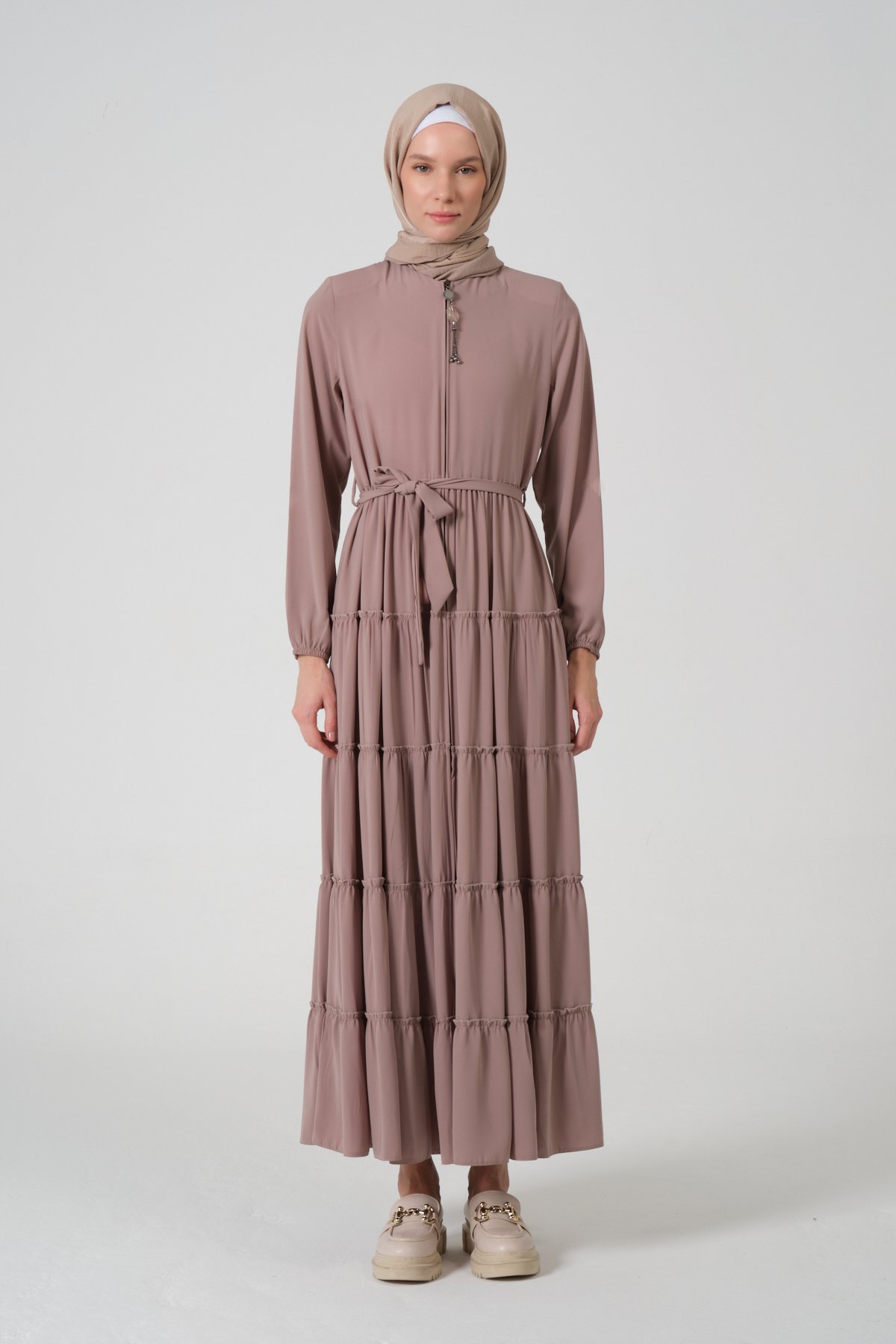 Viskon Kumaş Yıldız Cepli Ferace Pembe - 46